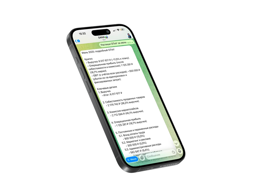 Подключи источники данных (1С, МойСклад, банки, CRM, таблицы и другие), задавай вопросы на русском языке и получай ответы на основе данных за секунды
